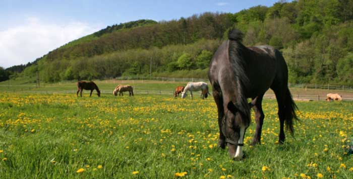 In den Sommermonaten stehen natürlich die reichhaltigen Kräuter- und Naturweiden, täglich