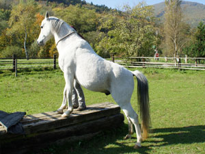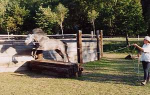 Wie z.B.: Junge Pferde anreiten, Longieren, Bodenarbeit, Zirkuslektionen und natürlich Freiarbeit um nur einige Bereiche zu nennen.